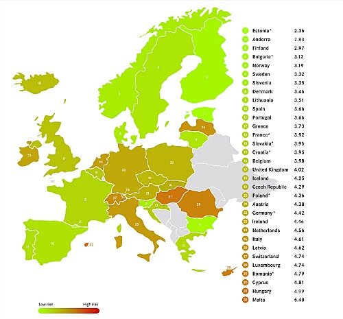 Базельский институт управления составил мировой рейтинг стран по признаку их борьбы с отмыванием денег и финансированием терроризма (AML), который возглавила Эстония. Как оказалось, именно эта юрисдикция имеет благоприятную AML репутацию и считается самой прозрачной и безопасной страной для финансовых потоков.